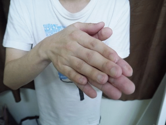 把髮蠟均勻抹於手掌