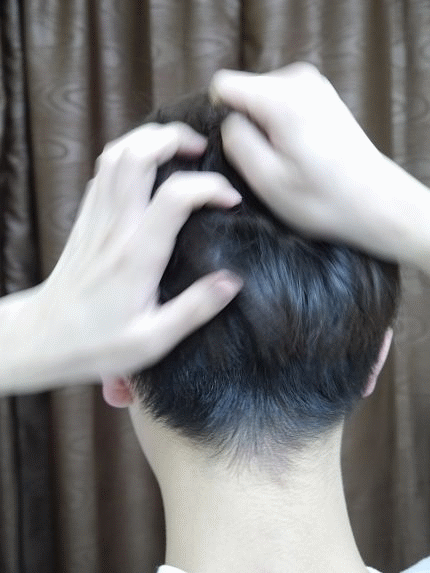 倒在頭頂跟後腦杓的根部